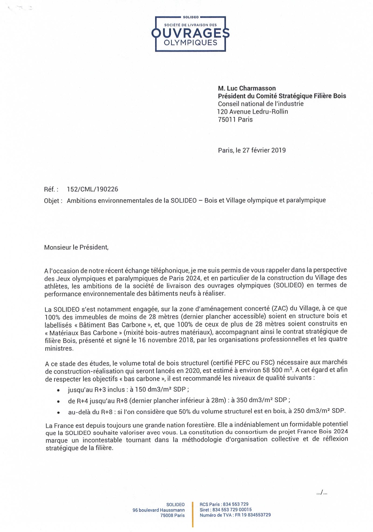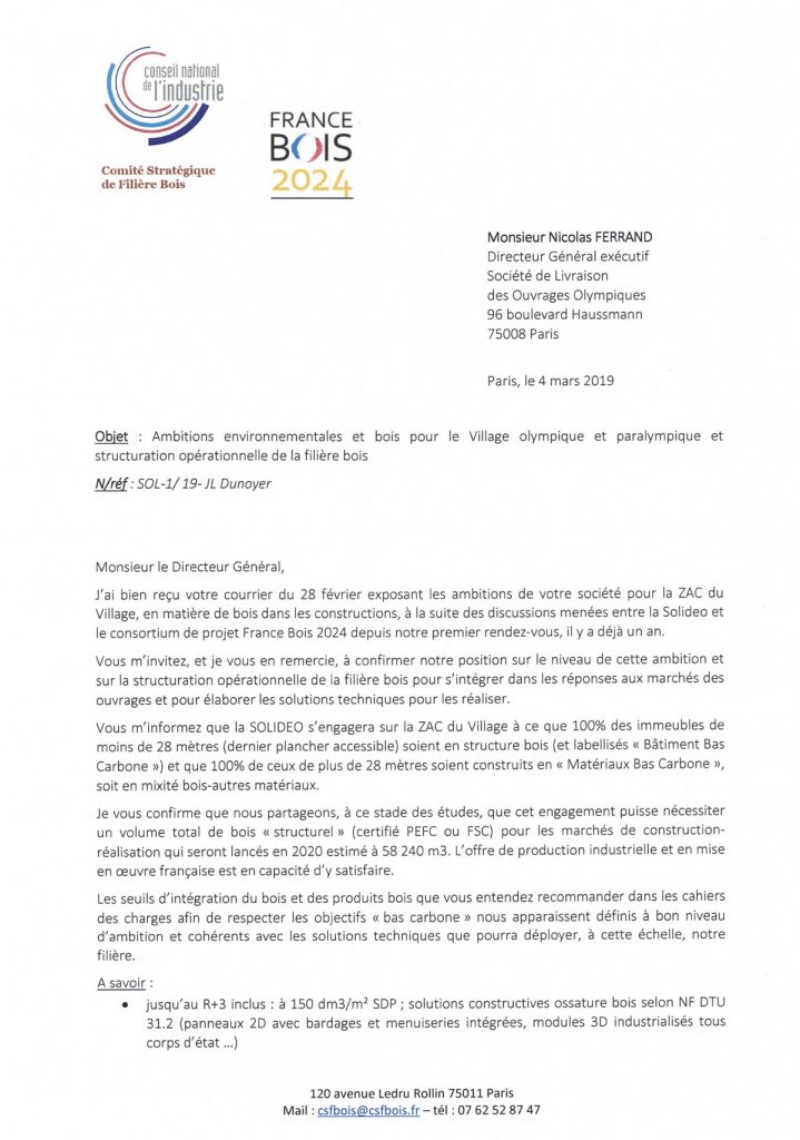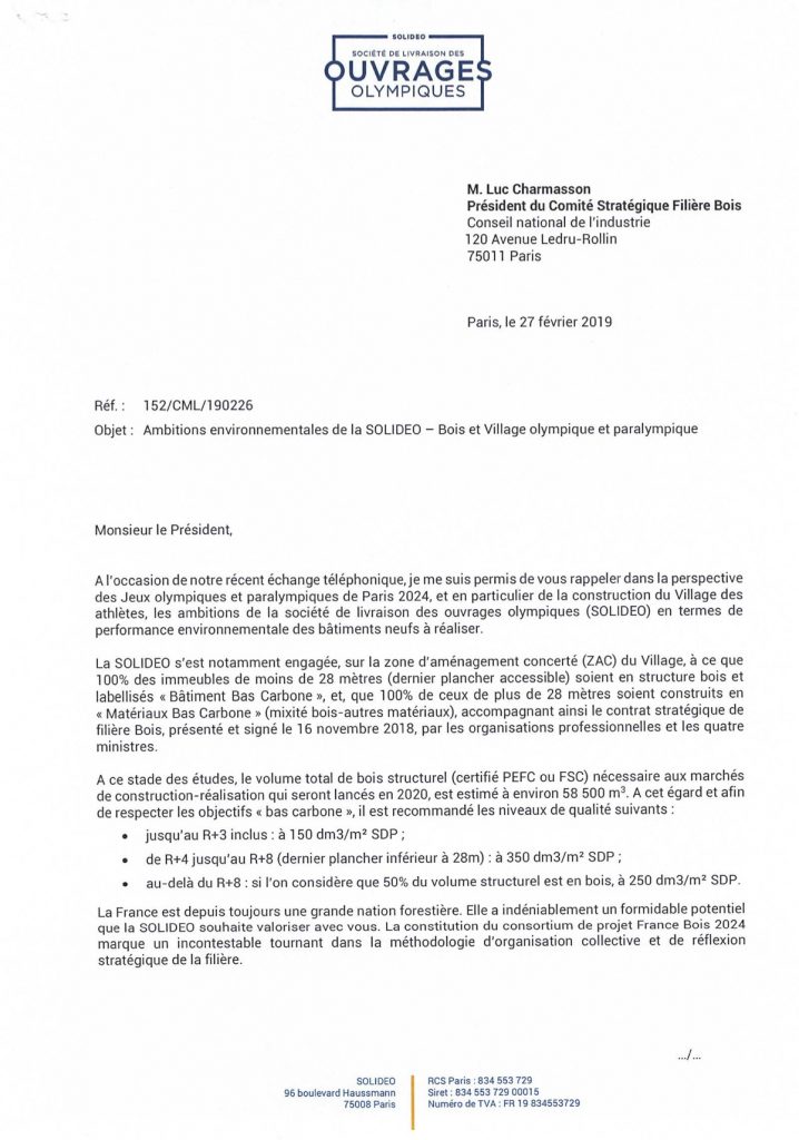 Nicolas FERRAND, directeur général exécutif de SOLIDEO présente les ambitions environnementales de la SOLIDEO à Luc CHARMASSON, président du comité stratégique filière bois.